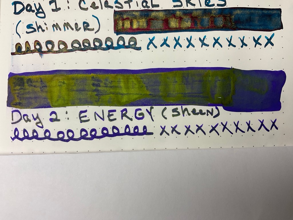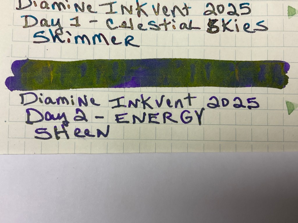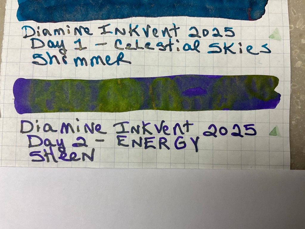 Today’s Diamine color is Energy. It is a purple ink that has lots of green sheen in it.