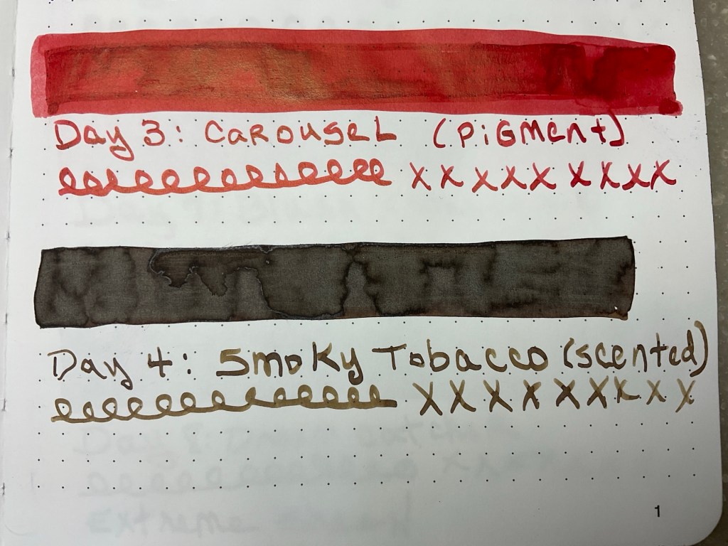 This is a nice brown but a little flat for me. It will make a good color for painting trees and ground. I’m not a big fan of brown inks to write with in my journals, so this will be an arts and crafts item.