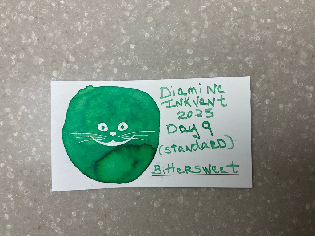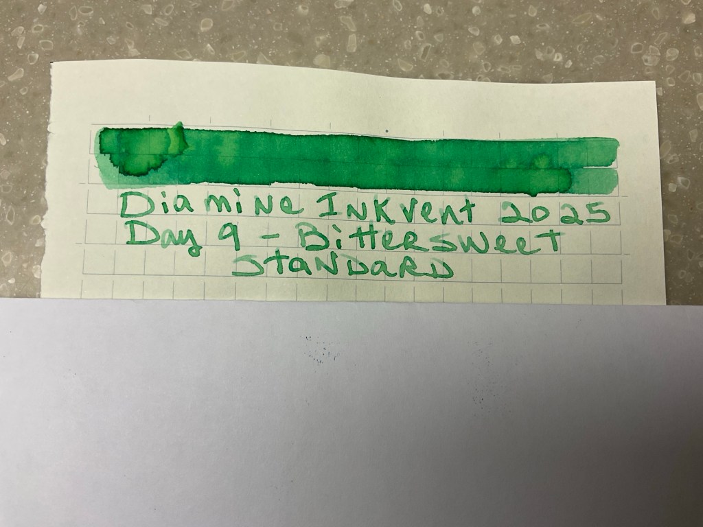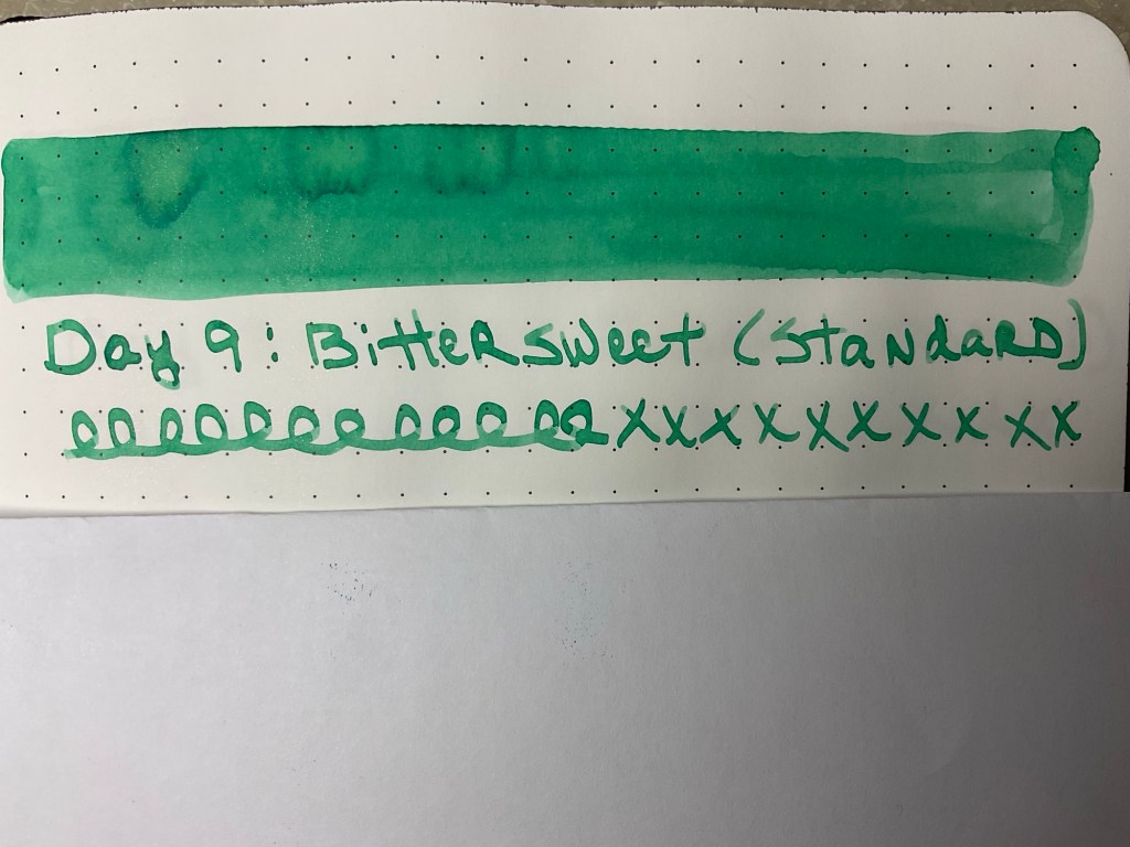 Day 9 is a very bright green. It’s a standard ink that is called Bittersweet.